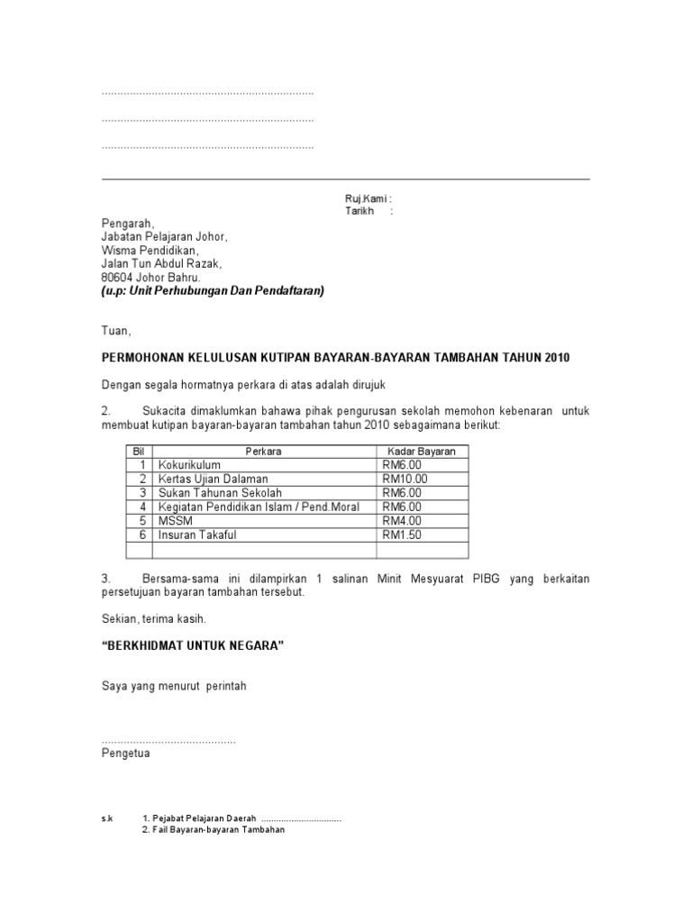 Contoh Format Surat Permohonan Kutipan Bayaran Tambahan 2012 Murid Bukan Warganegara Pdf